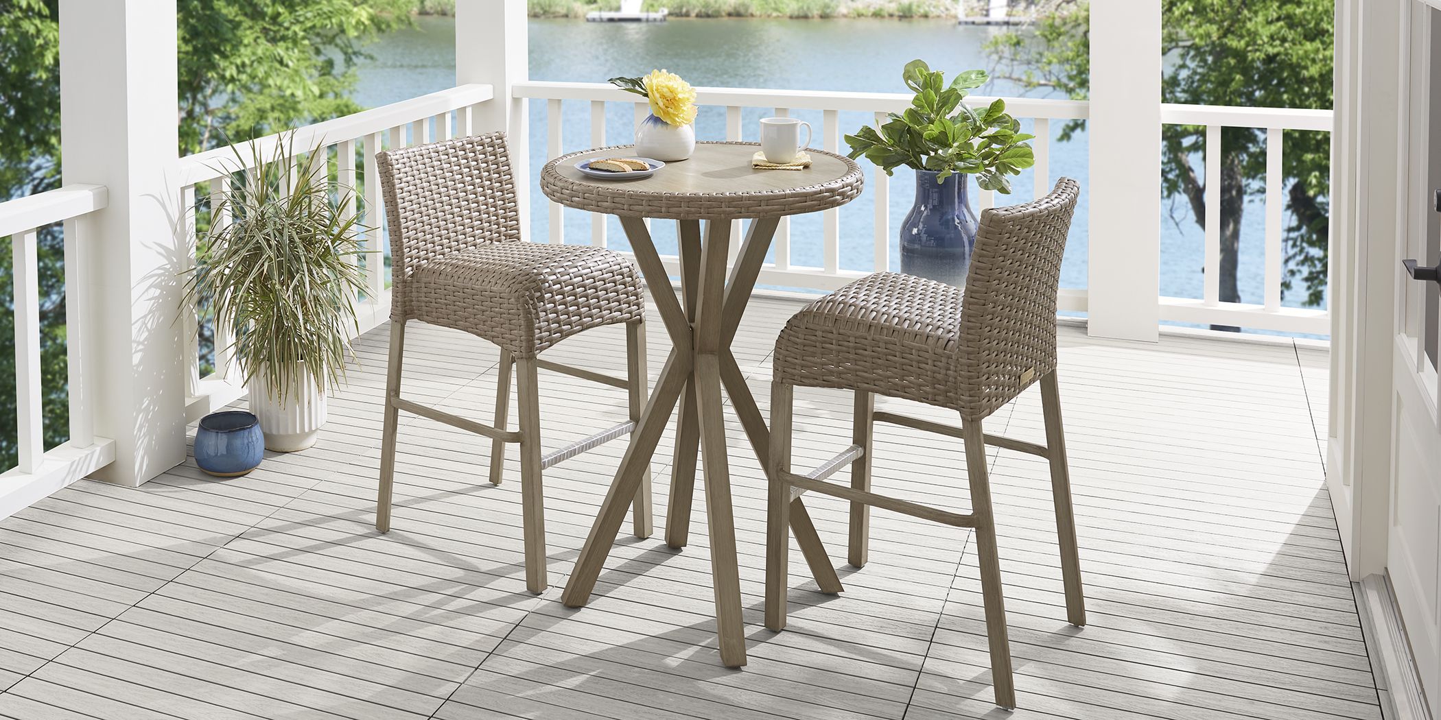 Product title 3 piece patio height bar set with table and chairs,. Crestlive products patio bar set, aluminum counter height bar stools and table set all weather furniture in antique brown finish for outdoor indoor, 2 pcs bar chairs with table (beige) $299.99. Acrylic round 36 cfa base pedestal umbrella bar table, kd. Chic teak orleans teak round 5 piece bar height patio dining set. Orleans teak round 5 piece bar height patio dining set. Each outdoor bar table is constructed to measure precisely 42 inches in overall height so they complement the height of our outdoor bar chairs. Patioland palm tree outdoor patio 5 pc set bar table 48 solid cast aluminum antique bronze. Ratings, based on 5 reviews. 1 table and 4 chairs. An outdoor rectangular bar height table is specially built and designed to combat tough weather. Choose between bar tables in two distinct collections: Bamboo furniture, high top deck dining table, abstract art display cases. Acrylic 66 x 40 rectangular umbrella bar table.